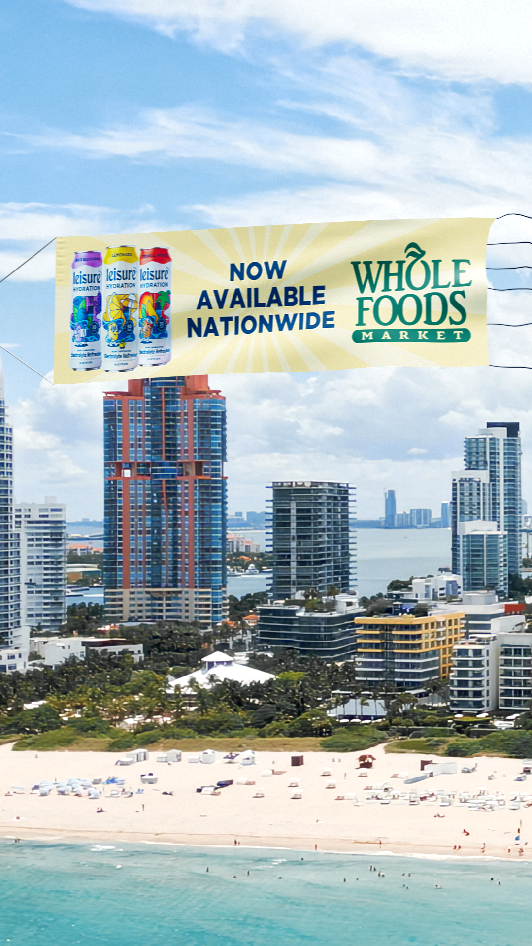 We partnered with Leisure Hydration to create a dynamic FOOH video announcing their launch at Whole Foods. The campaign showcased their variety of flavored cans traveling across the globe, appearing in iconic locations such as Miami, New York City, and Chicago—capturing attention and sparking excitement for the brand’s debut.