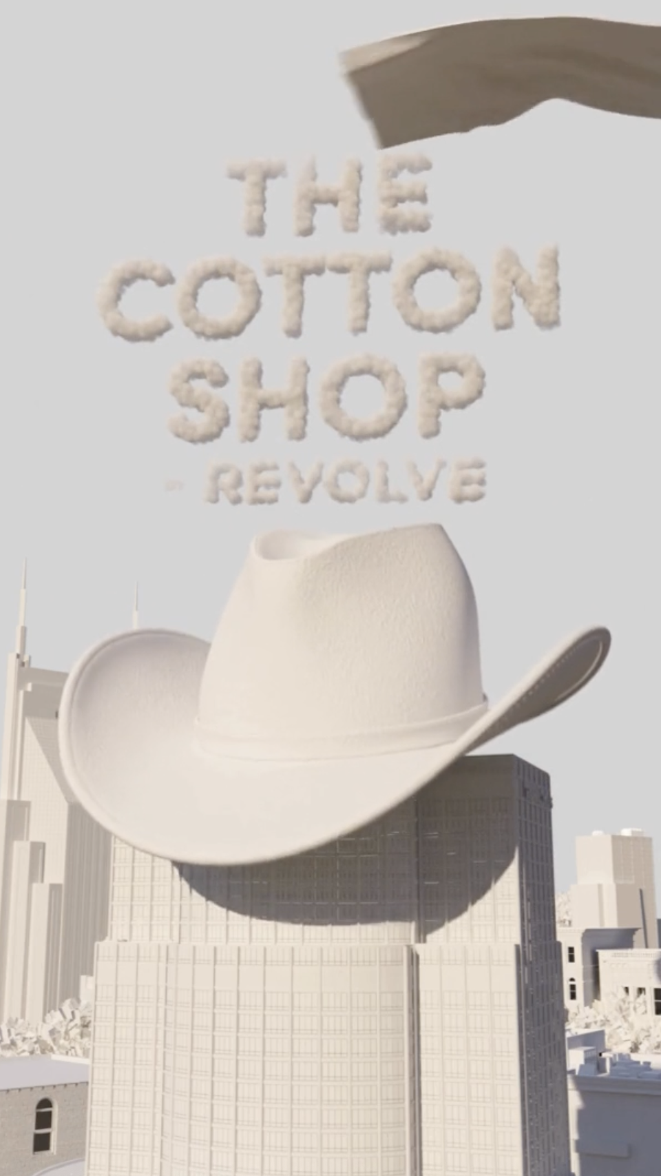 Revolve partnered with The Cotton Shop to bring their Nashville pop-up collaboration to life through CGI. We created a striking digital asset that announced the event in a visually engaging way, blending Revolve’s fashion-forward aesthetic with The Cotton Shop’s creative vision. The result was a high-impact piece that captured attention online and generated excitement leading up to the Nashville launch.